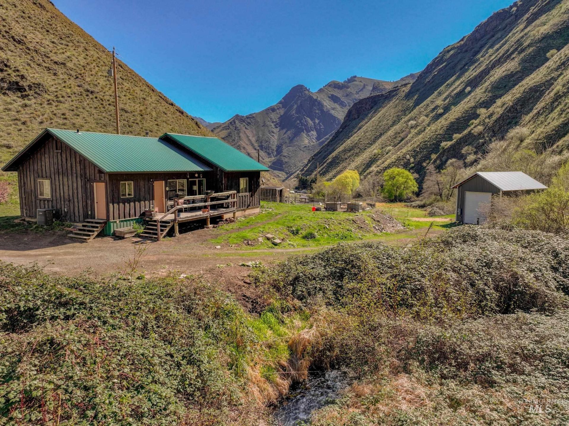 NEW LISTING! Take a look at this great cabin on Squaw Creek located minutes from downtown Riggins and USFS access. 26.323 acres adjacent to State of Idaho ground. Make this 1229 sq ft, 2 bedroom, 2 bath rustic home with a 20x30 shop your primary home or secondary retreat. The open concept living space boasts extensive blue pine throughout, vaulted cielings, hard wood cabinetry, HVAC (electric heat pump), wood burning stove and a master suite. There are several acres of fenced pasture for your livestock w/ creek frontage and irrigation, various animal shelters and pens, a chicken coop, apple and peach trees and abundant wild berries along the creek. The shop has 200 amps of power. Seven Devils Road serves as a gateway to 13 mountain lakes for hiking, fishing, hunting and more. Enjoy the nearby Salmon Rivers for world class salmon and steelhead fishing, white sandy beaches, whitewater rafting, jet boating and more. Come enjoy the Canyon life in Riggins! (A majority of the acreage adjacent to State of Idaho ground is up a steep mountainside - See drone shots within listing). BTVAI.