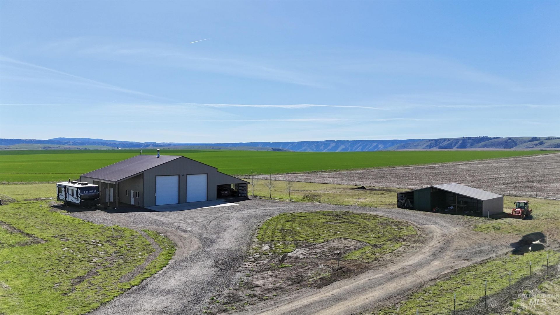Custom-built in 2023, this beautifully crafted two-story home offers 2,490 sq ft of living space on 3 level acres just outside Grangeville, with stunning Camas Prairie views and mountains in the distance. Featuring 3 bedrooms and 3 full baths, including two private suites?each with its own bath and pine beam ceilings?this home blends comfort with character. The open-concept living area flows into a bright sunroom with an oversized built-in swim spa, perfect for year-round enjoyment. Unique walls milled from Yosemite-sourced trees add warmth and charm. Efficient heating includes an electric furnace with heat pump and a pellet stove with thermal mass heater. Enjoy a covered concrete patio with built-in pizza oven?ideal for entertaining. Property includes a 50 amp RV hookup, shared 40 GPM well, and space for animals or expansion. Attached 1,200 sq ft shop/garage with two 12x14 doors, plus a 20 x 46 carport on the west side of the house and a 12 x 30 carport on the east side of the house. Also features a 24 x 40 barn, fruit trees, frost-free spigots, and French drain. No HOA?move-in ready with room to grow.